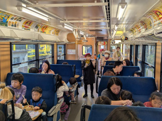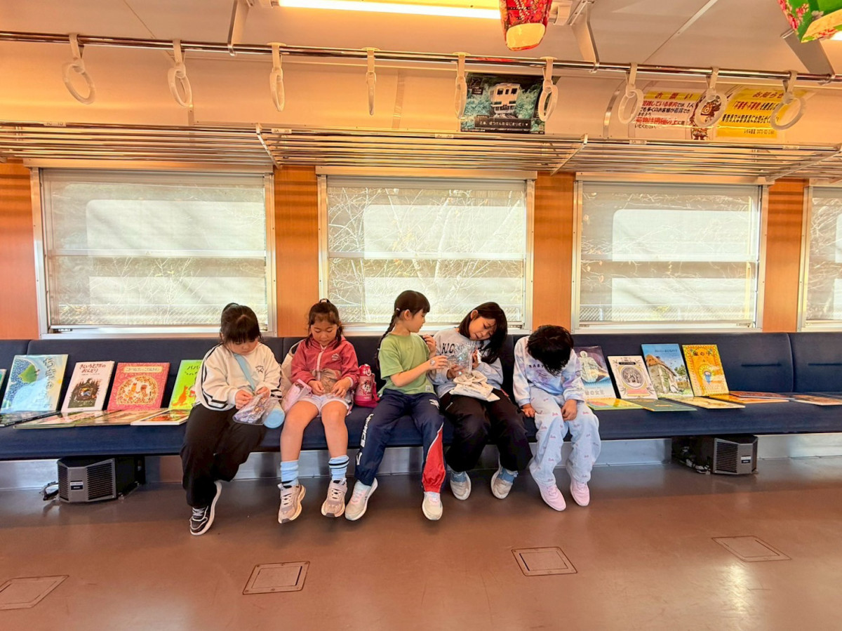 いすみ鉄道車両内で絵本を楽しむ子どもたち(写真提供=Yellow)