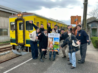 イベント当日のいすみ鉄道大多喜駅入口の様子。学生たちが看板などを準備した