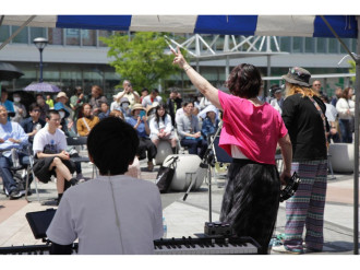 今回は同キャンプ場内の施設で荘司さん主宰の若潮書道教室書道展「美心を筆に託して」が開催されていたことから、同展の最終日にミニコンサートを開くことなった。
