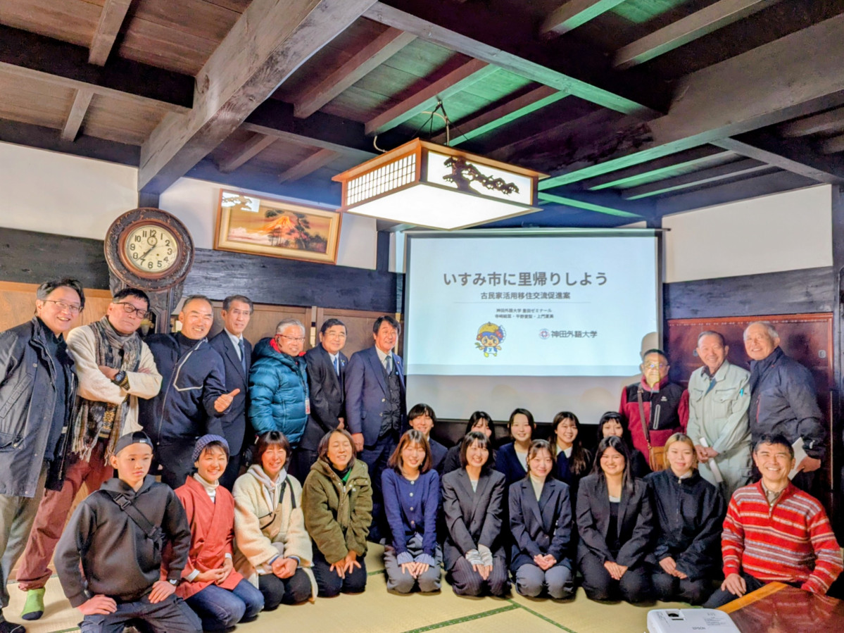 神田外語大学の豊田ゼミ生と参加者。いすみ市議や地域活動に取り組む市民が集まった