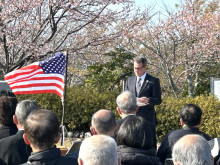 勝浦市川津沖で座礁沈没した蒸気船「ハーマン号」の慰霊祭が2月13日、官軍塚公園慰霊碑前(勝浦市川津)で執り行われた。