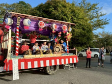 上総中野駅前で山車に乗り演奏する子ども達と笛を演奏する大人達(写真提供=Yellow)