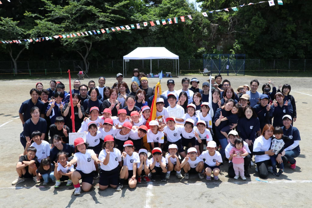6月に開催した豊浜小学校の最後の運動会。全校生徒と保護者での集合写真(写真提供=豊浜小学校閉校事業実行委員会)