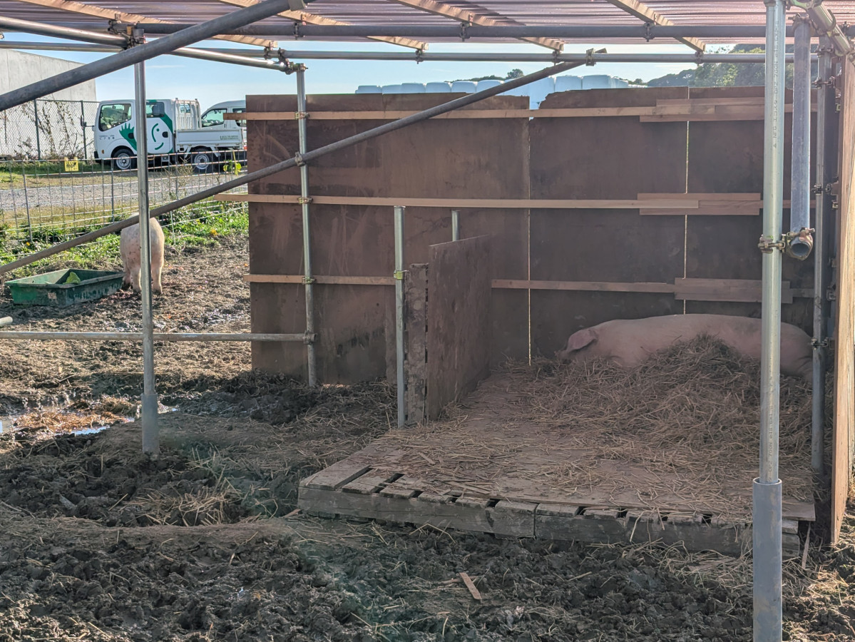 ホエイ豚2頭の肥育を先月始めた高秀牧場(いすみ市須賀谷)が11月11日、エコフィードの取り組みとして、不要な柿の募集を始めた。