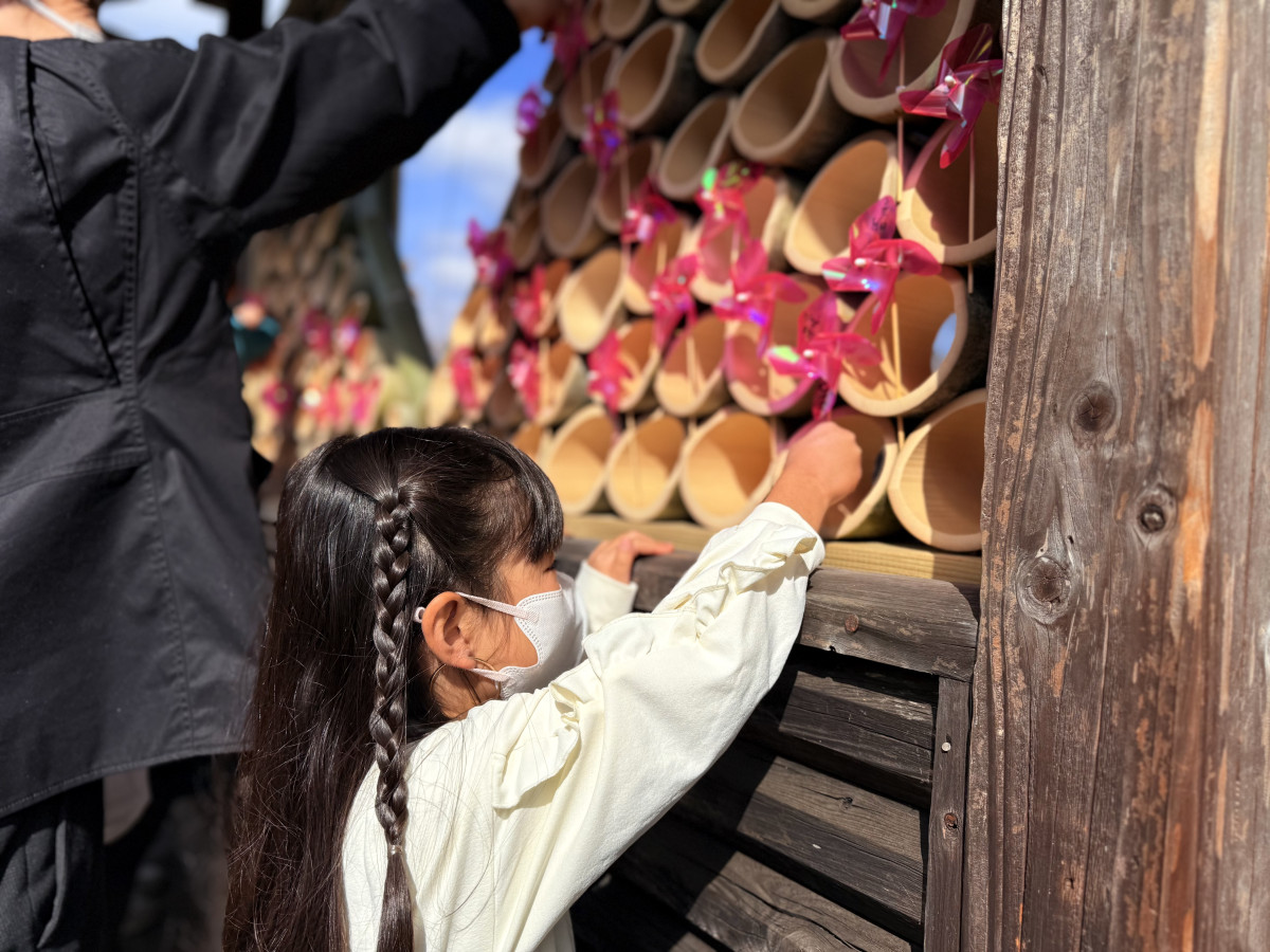 いすみ鉄道と小湊鉄道の接続駅「上総中野駅」で2月14日、縁結びや出会いをテーマにした風車オブジェ設置イベントが開催された。