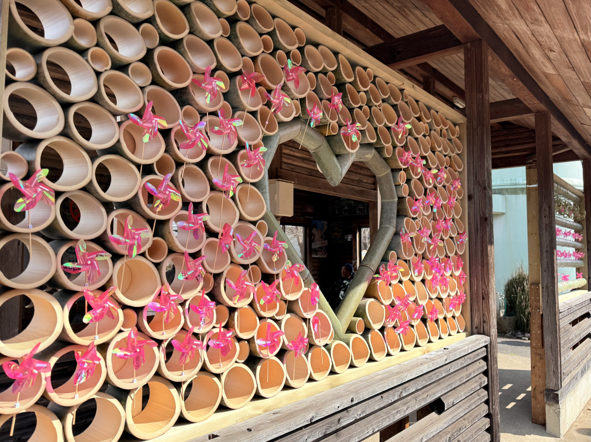 いすみ鉄道と小湊鉄道の接続駅「上総中野駅」で2月14日、縁結びや出会いをテーマにした風車オブジェ設置イベントが開催された。