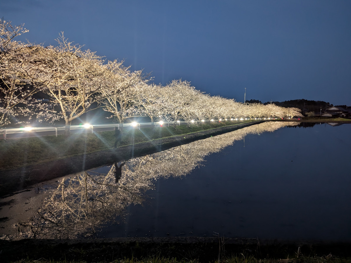 いすみ市札森地区「札森さくら街道」と万木地区の桜並木のライトアップが3月28日、始まった。