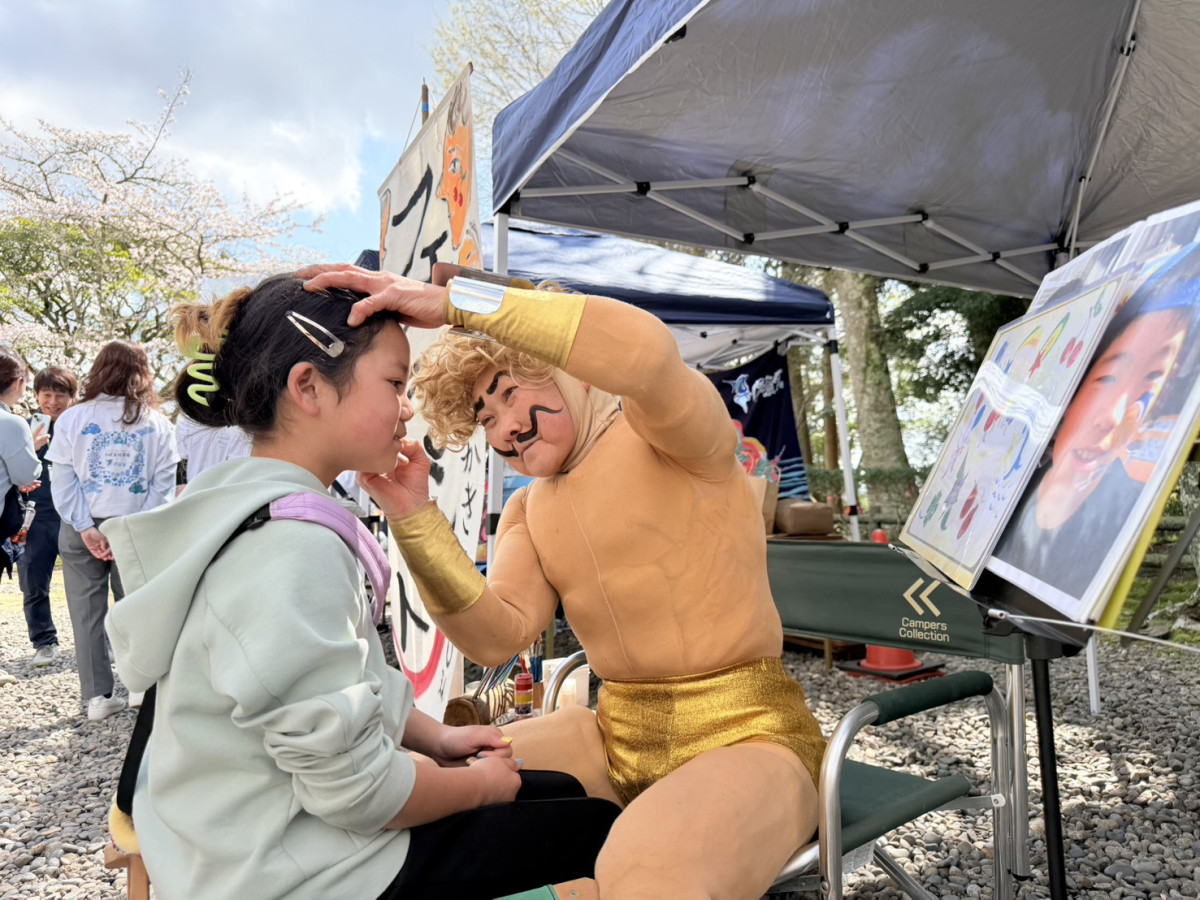 フェイスペイント体験ブースで顔にペイントするパフォーマンス(写真提供=Yellow)