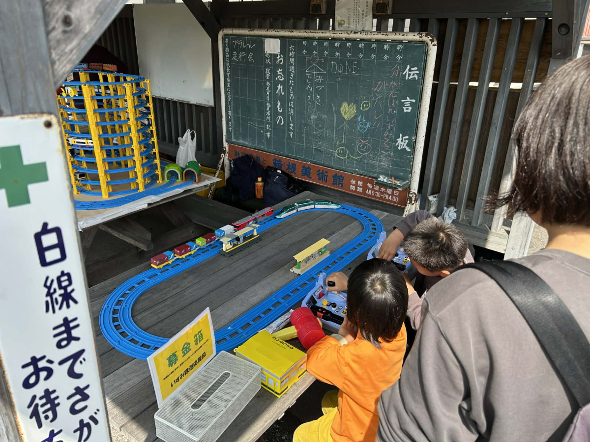駅構内に設けられたプラレール会場にたくさんの子どもたちが集まった