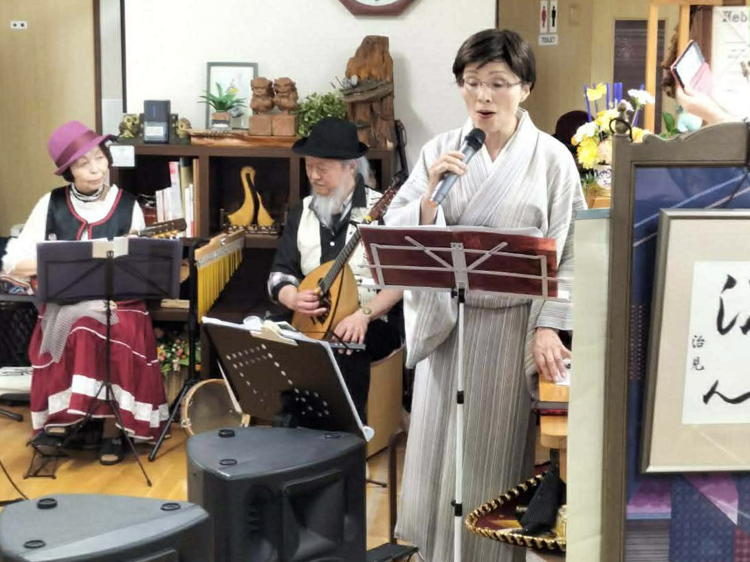 「響」のメンバーが演奏する中、荘司さんが着物姿で歌を披露する光景も見られた