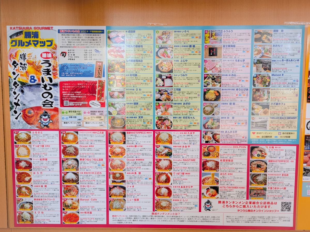 「勝浦グルメマップ」では、市内の飲食店と勝浦タンタンメンを提供する店を紹介する