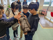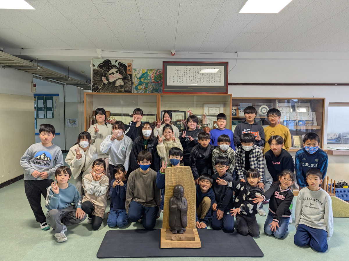千葉県伝統的工芸品の木彫(もくちょう)の仏像が3月2日、いすみ市立浪花小学校に届き、子ども達が触れ合った。